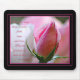 Un beau bouton de rose rose avec doucement rose et le blanc à l'arrière-plan accentue le 13h13 de Corinthiens de l'écriture sainte 1. La foi, l'espoir, et l'amour est le message de ce mousepad inspiré. La conception a une frontière noire épaisse avec le filet rose à l'intérieur de la frontière.