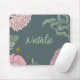 Tapis De Souris Élégant script monogramme vert olive vert rose flo