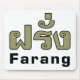 Farang est un mot thaïlandais générique désignant quelqu'un d'ascendance européenne, peu importe d'où il vient. Amusant Humour sud-est asiatique ~ Farang signifiant Étranger en langage thaïlandais Script.