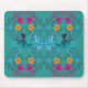 Beau motif turquoise représentant des fées du milieu de l'été assis méditativement parmi des fleurs d'été vibrantes, adorant la nature sous la forme d'un grand papillon bleu.
