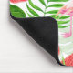 Aquarelle design motif avec des fleurs et des oiseaux flamands, la monstère et les feuilles de palmiers.