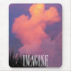 Cette photo originale de Mouse Pad est une photo de nuages dans le ciel oriental reflétant le coucher du soleil à l'ouest, sur le golfe du Mexique. Le ciel tropical du soir est baigné d'une chaude lumière rose au-dessus de la silhouette sombre des palmiers. Le remplissage de la plupart de la photo est un nuage dans une forme très intéressante, ressemblant presque à un animal de jouet...utilisez votre imagination...les couleurs roses douces des nuages abrupts près du fond de la photo s'intensifient lorsque le soleil frappe la forme épaisse et éclatante du nuage principal qui monte dans le ciel. La forme de bouffée en haut du nuage a des reflets jaunes. Près du bas de la bouche est le mot IMAGINE, en minces lettres majuscules blanches.