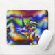 Une conception de fractale avec des papillons flottant environ. Les couleurs incluent bleu, pourpre, jaune-orange, blanc, vert, et plus.
