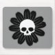 Cette petite fleur mignonne de marguerite a des pétales foncés et un crâne au centre.