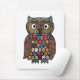 Tapis de souris avec une illustration mignonne de hibou de collage de patchwork faite à partir de différentes photographies des fleurs, des animaux, des paysages, des couchers du soleil et toujours de la vie.