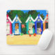 Un mousepad lumineux et gai, décoré d'un collage de papier peint à la main des huttes de plage.