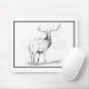 Un stylo à bille noir et blanc illustre un wapiti regardant par-dessus son épaule à un bruit qu'il entendait. Une oreille en avant, une oreille en arrière. Le moment de l'indécision de continuer à paître ou à courir pour sa vie. Par l'artiste BIRO Robin Hewitt.