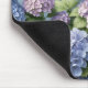 Des grappes de fleurs d'hydrangée vibrantes dans les tons bleu et violet avec des feuilles verts sur un arrière - plan doux et muet