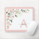 Tapis De Souris Joli rose Floral Script Monogramme Nom initial