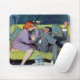 Artiste : Lynn Buckham | Une femme en robe violette et un homme en costume assis sur un canapé vert.