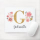 Un magnifique tapis de souris rose monogrammée féminine, avec des fleurs roses et une lettre en or monocorde G. Personnalisez le tapis de souris en ajoutant votre nom sous le monogramme. Fait un cadeau amusant pour un ami ou pour un cadeau de femme d'honneur. Conçu pour vous par Blackberry Boulevard.