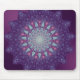 Design inspiré des diagrammes cosmiques mandala avec des lignes fines et un tissage complexe. Le motif répétitif et accrocheur crée un design symétrique avec une dentelle transparente comme l'apparence visuelle. Le contour de la forme suit une ligne de zigzag, ce qui fait que l'image entière rappelle une étoile. Le choix de couleurs est élégant, basé sur des tons violets très vifs, avec un dégradé discret suggérant l'évolution de la vie, de la sagesse et de la spiritualité.