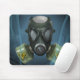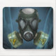 Un étrange et imposant vagabond inconnu est caché derrière un masque à gaz 2ÈME GUERRE MONDIALE à double cylindre en traversant un désert toxique mortel débordant d'une vapeur toxique bleue brumeuse omniprésente.