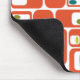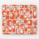 Ce tapis de souris a un design moderne du milieu du siècle de rectangles orange avec des rectangles blancs et des ovales verts et bleus à l'intérieur.