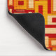 La lampe moderne de trépied de Geometrics de la rétro moitié du siècle comporte un motif géométrique des rectangles et des carrés avec une texture de craquement. Les couleurs sont rouge, jaune d'or, ocre et ivoire.