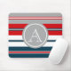 Design à thème nautique avec décoration monographique en forme ronde sur arrière - plan rayé bleu, blanc, rouge et gris