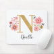 Un magnifique tapis de souris rose monogrammée féminine, avec des fleurs roses et une lettre en or monocorde N. Personnalisez le tapis de souris en ajoutant votre nom sous le monogramme. Fait un cadeau amusant pour un ami ou pour un cadeau de femme d'honneur. Conçu pour vous par Blackberry Boulevard.