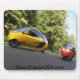 Mousepad avec l'image d'un MonoTracer tout-électrique jaune et d'un rouge BMW-a actionné MonoTracer