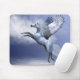 Le Pégase Blanc étend ses ailes magnifiques en vol au-dessus d'un océan.
