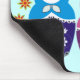 Mousepades russes à poupée de Matryoshka. Une jolie mousepad avec trois mignonnes Matryoshkas russes, bleu, violet et vert. Leurs vêtements sont ornés d'élégantes fleurs blanches. Autour d'eux, de jolis tournesols.