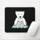Polaires tristes concernent des caractéristiques de glace un ours blanc accrochant sur un morceau de glace de fissuration flottant en mer bleue froide. Un message au sujet de l'environnement fragile de l'ours blanc et d'un dessin attrayant de ce prédateur magnifique.