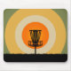 Ce design graphique présente des anneaux colorés autour d'un panier de golf à disque silhouette et de l'herbe.