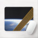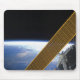 Panneaux solaires sur la Station Spatiale Internationale rétroplacés contre l'horizon terrestre avec STS-126.