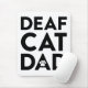 Le texte noir "Deaf Cat Dad" est empilé en trois lignes de texte en majuscules. Le "a" dans "Papa" a une patte blanche à l'intérieur.
