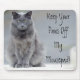 Maintenez le minou gris heureux ! "Gardez vos pattes outre de mon Mousepad !" à côté d'un minou gris semblant fâché. Fait un grand cadeau - pour n'importe quelle occasion.