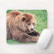Gros ours brun, mou et contenu allongé dans l'herbe, regardant la caméra.