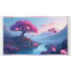 Un arbre rose vif se dresse majestueusement au bord d'une rivière sereine, entourée d'une flore luxuriante et colorée.
