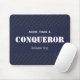 Élégante motivation CHRISTIAN MOUSE PAD avec le rappel que l'amour du Christ pour nous fait de nous plus que des conquérants. Le design montre un arrière - plan bleu minuit avec "CONQUEROR" dans un motif carrelé bleu cornflower. Le texte principal se lit PLUS QU'UN CONQUÉRANT, qui est basé sur Romains 8:37. Un excellent cadeau pour les anniversaires et Noël. Particulièrement adapté à la Fête des pères ou comme un don pour encourager et bénir une personne spéciale. Le texte de premier plan est PERSONNALISABLE, donc vous pouvez modifier le texte" ou la référence de l'Écriture peut être remplacé par un nom si vous le souhaitez. Une partie de la collection de FÊTES DES PÈRES chez Berean Designs.