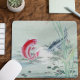 Koi Fish with Lotus est un tableau brosse de style "Gongbi" chinois traditionnel. Aquarelle et encre sur papier de riz. Dans la culture chinoise traditionnelle, le poisson est le symbole de la fertilité et de la richesse. Les images de poissons sont aussi souvent données comme cadeau mariage car les poissons se multiplient rapidement et ils nagent souvent en couples. En Chine, le poisson et le jade sont des mots homonymiques (tous "yu"), de sorte que le poisson représente l'abondance et l'abondance. Le poisson Koi a une longue histoire en Chine. C'est l'une des choses les plus populaires auspicious. Les anciens Chinois considèrent le poisson koi comme l'un des symboles de richesse, de respect, de chance et de pouvoir. En particulier, un poisson noir et un poisson rouge frolant dans l'eau ressemblent aux zones noir et blanc de TaiJi ("grand ultime"). Ainsi, deux peintures de poissons ou des rouleaux peuvent représenter yin et yang et a des significations très favorables. Deux poissons sont aussi l'un des huit Auspicious symboles du bouddhisme. Ils représentent une relation ferme et harmonieuse, et ils symbolisent le bonheur et peuvent éloigner le mal. Dans Feng Shui Lotus Flower et Koi Fish Paintings représentent que vous vivez dans l'abondance et chaque année peut vous obtenir toujours plus que vous voulez. La peinture chinoise est l'une des plus anciennes traditions artistiques continues du monde. Gongbi, ou "Peinture méticuleuse", a été particulièrement apprécié pour sa technique réaliste et sa coloration audacieuse. GongBi est une technique minutieuse et réaliste de la peinture chinoise, à l'opposé du style XieYi interprétatif et librement expressif. La technique demande que les coups de pinceau "soient aussi détaillés que possible", utilise des coups de pinceau très détaillés qui délimitent les détails très précisément et sans variation indépendante ou expressive. En outre, il tente de trouver un équilibre entre l'expression artistique et la vitalité, est souvent très coloré et représente généralement des sujets figuraux ou narratifs. Gongbi nécessite d'abord le dessin avec des lignes fines pour représenter les ressemblances exagérées des objets, puis ajoute des rondelles d'encre et de couleur couche par couche pour approcher la perfection de l'exquisité et de l'art fin.