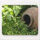 Photographie prise dans un parc local montrant de la poterie accentuant le jardin transformé en tapis de souris.