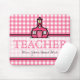 Un mousepad pour des professeurs comportant un arrière - plan rose de guingan. Le texte à l'intérieur de la section centrale pure avec l'équilibre rose est personnalisable. Logo de l'école rose au-dessus du texte.