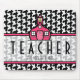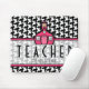 Un mousepad pour des professeurs comportant un arrière - plan noir et blanc de pied-de-poule. Le texte à l'intérieur de la section centrale pure avec l'équilibre rose est personnalisable. Logo de l'école rose au-dessus du texte. Recherchez plus de cadeaux de pied-de-poule dans la catégorie de "pied-de-poule" du magasin rose d'école.