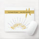 Ce design est orné de "Anniversaire" aux couleurs de pointes jaunes et noires. Petits coeurs comme des pointes. Un opaque blanc plumé est inséré comme couleur de fond. Ce tapis de souris ferait un grand cadeau à votre être aimé pendant 50 ans de mariage. Customisez avec vos propres informations sur le ruban avec un arc en haut du verre.