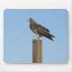Le faucon d'un Swainson était perché sur un courrier souterrain de marqueur de câble d'entreprise de téléphone. L'emplacement est la route nationale 562, le comté de Union, Nouveau Mexique Etats-Unis