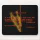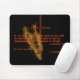 Un tapis de souris noir avec deux écritures saintes concernant la foi et à l'arrière-plan est une croix ardente.