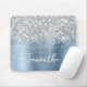 Tapis De Souris Silver Glitter Light Blue Glam Name