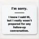 Pour l'amoureux du sarcasme en chacun de nous. Regardez cette histoire "Je sais que j’ai dit Bonjour, mais je n’étais vraiment pas préparé à une quelconque Conversation de suivi" sur les vêtements et les cadeaux.