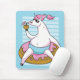 Une licorne d'été cool sur un beignet flotte pour boire un verre cool en bord de piscine.