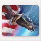 un bel ealge américain volant au-dessus d'un ciel peint avec le drapeau américain.