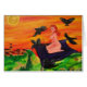 Un petit vol de sorcière sur un tapis vers une partie de Halloween