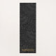 Boho Black Grey Botanical Motif Yoga Mat avec "Namaste" sur le fond.