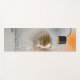 Ce tapis de yoga a une lampe et un lion en photo.