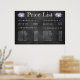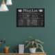 Cette grande affiche murale de liste de prix de designer graphique typographique contemporain est faite pour ressembler à un tableau noir, mais ne l'est pas. Il s'agit d'un modèle technologiquement avancé qui est configuré et prêt à être personnalisé avec vos propres services et prix de salon de café et de menu.
