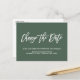 Müssen Sie Ihre Hochzeit verschieben oder verschieben? Weisen Sie Ihre Gäste darauf hin, dass sich Ihr Hochzeitstermin mit dieser Ankündigung von Elegant Wedding Postponement oder Date Change geändert hat, die mit einem trendigen Drehbuch-Sprichwort "Ändern Sie das Datum" in Weiß auf einem zeitgenössischen waldgrünen Hintergrund zeigt. Für individuelle Anfragen schreiben Sie bitte an citronelladesign@gmail.com Blush PINK COLOR