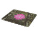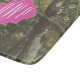 Ein Geschenk, das einen Tarnungshintergrund kennzeichnet. Personifizieren Sie mit Ihrem Monogramm über rosa quatrefoil Entwurf.