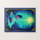 Puzzle in der Tarot-Karte XVII: Der Stern: Eine ruhige Frau kniet unter einem strahlenden Stern von einem Lichtstrom ab, umgeben von blühenden Blume und ruhigen Bäumen. In sanftem, himmlischem Licht ragt sie in Staunen und Hoffnung nach oben und ruft Frieden, Inspiration und spirituelle Erneuerung hervor.